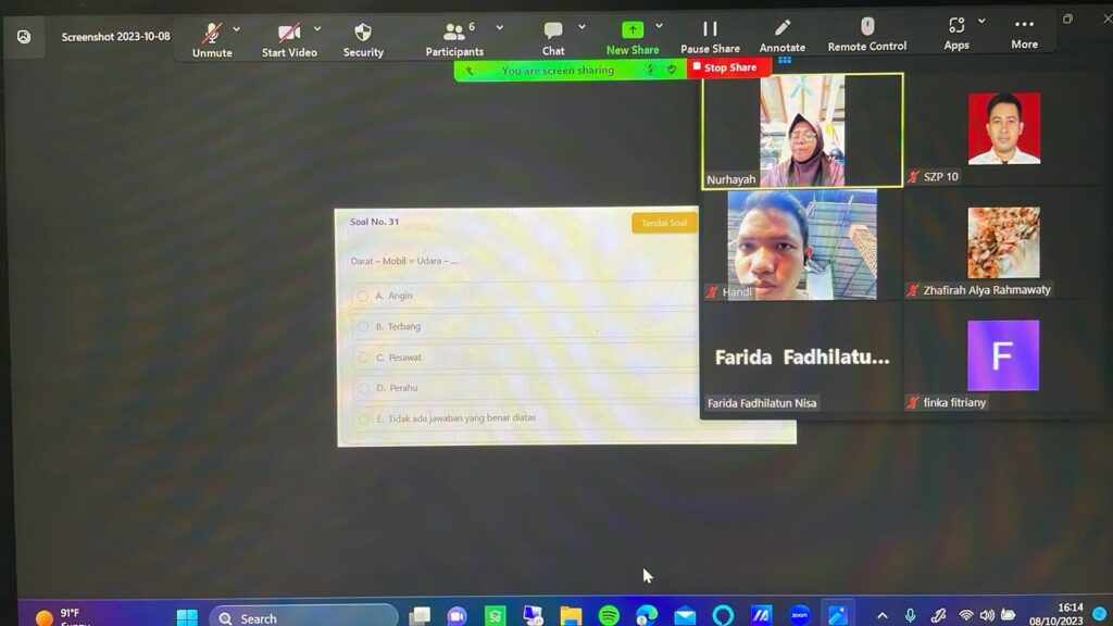 Bertempat di Menteng,Jakarta Pusat SZP mengadakan bimbingan untuk Anak muda calon ASN melalui online via Zoom.Minggu (8/10).