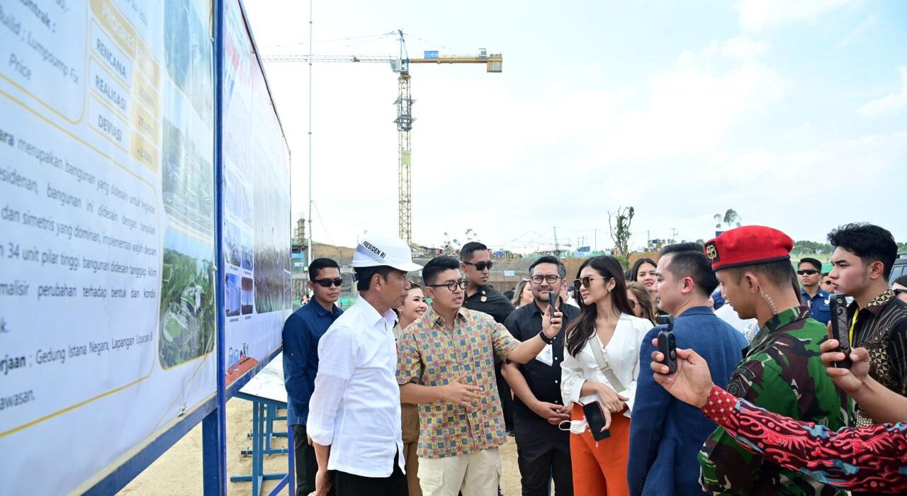 Di sana, Presiden menjelaskan mengenai progres pembangunan hingga menunjukkan letak Istana Presiden yang bisa dilihat secara jelas dari atas bangunan kantor presiden.