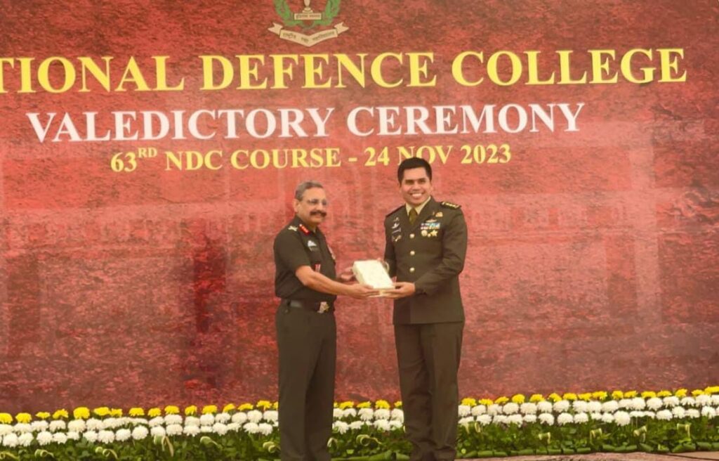 Jakarta – Kabarlagi.id.Prestasi membanggakan ditorehkan salah satu Perwira TNI AD yang berhasil mengharumkan nama Indonesia saat mengikuti Pendidikan di National Defence College India. Kolonel Inf Polsan Situmorang berhasil meraih Book Prize Award dengan karya tulis Research Thesis terbaik yang diserahkan langsung oleh Komandan NDC Lieutenant General Sukrity S Dahya, pada penutupan pendidikan National Defence College, di New Delhi, India, Jumat (24/11/2023).