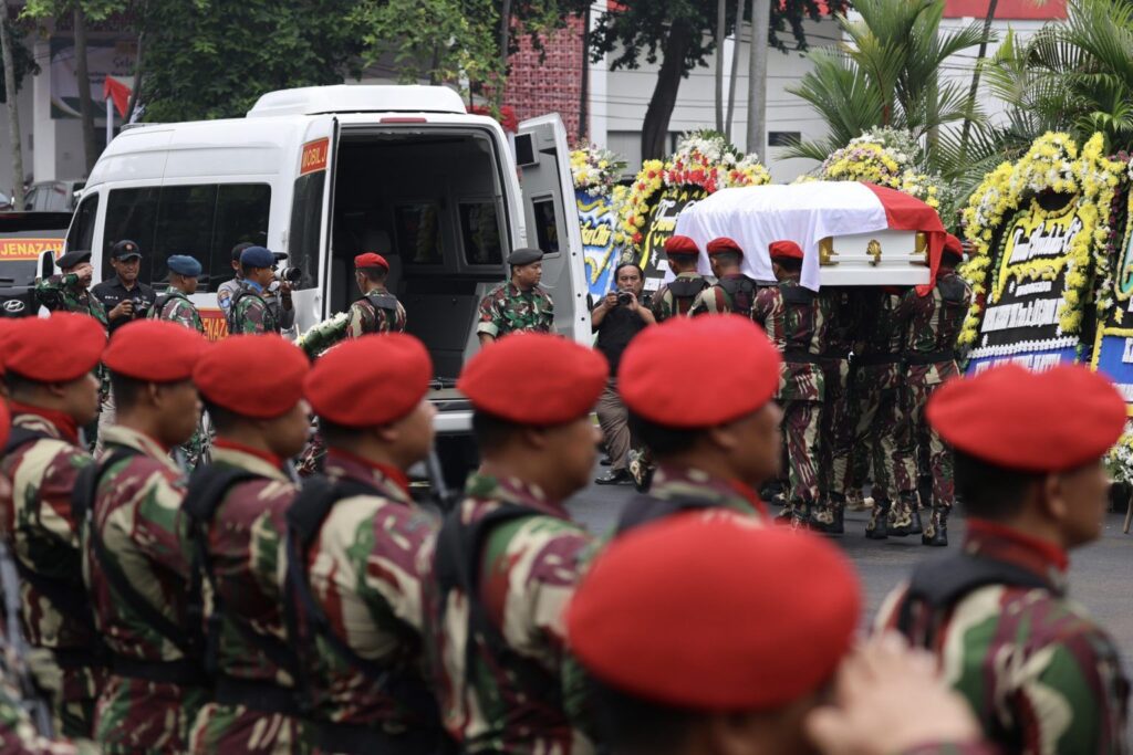 Setelah dilepas secara militer, jenazah diberangkatkan menuju pemakamam di TMP Kalibata, Jakarta Selatan. Upacara pemakaman tersebut dipimpin langsung oleh Panglima TNI Jenderal TNI Agus Subiyanto.