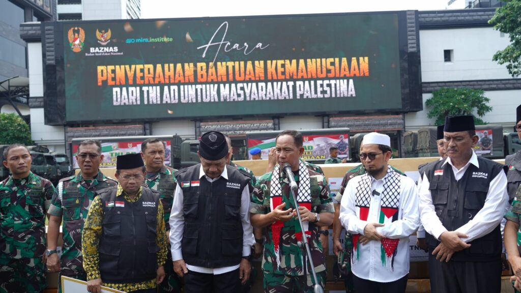 Hal tersebut disampaikan Kepala Staf Angkatan Darat (Kasad) Jenderal TNI Agus Subiyanto, S.E., M.Si., saat menyerahkan bantuan untuk Palestina kepada Badan Amil Zakat Nasional (BAZNAS) dan diterima langsung oleh Ketua BAZNAS RI Prof. KH. Noor Achmad, di Markas Besar Angkatan Darat (Mabesad), Jakarta, Rabu (8/11/2023).