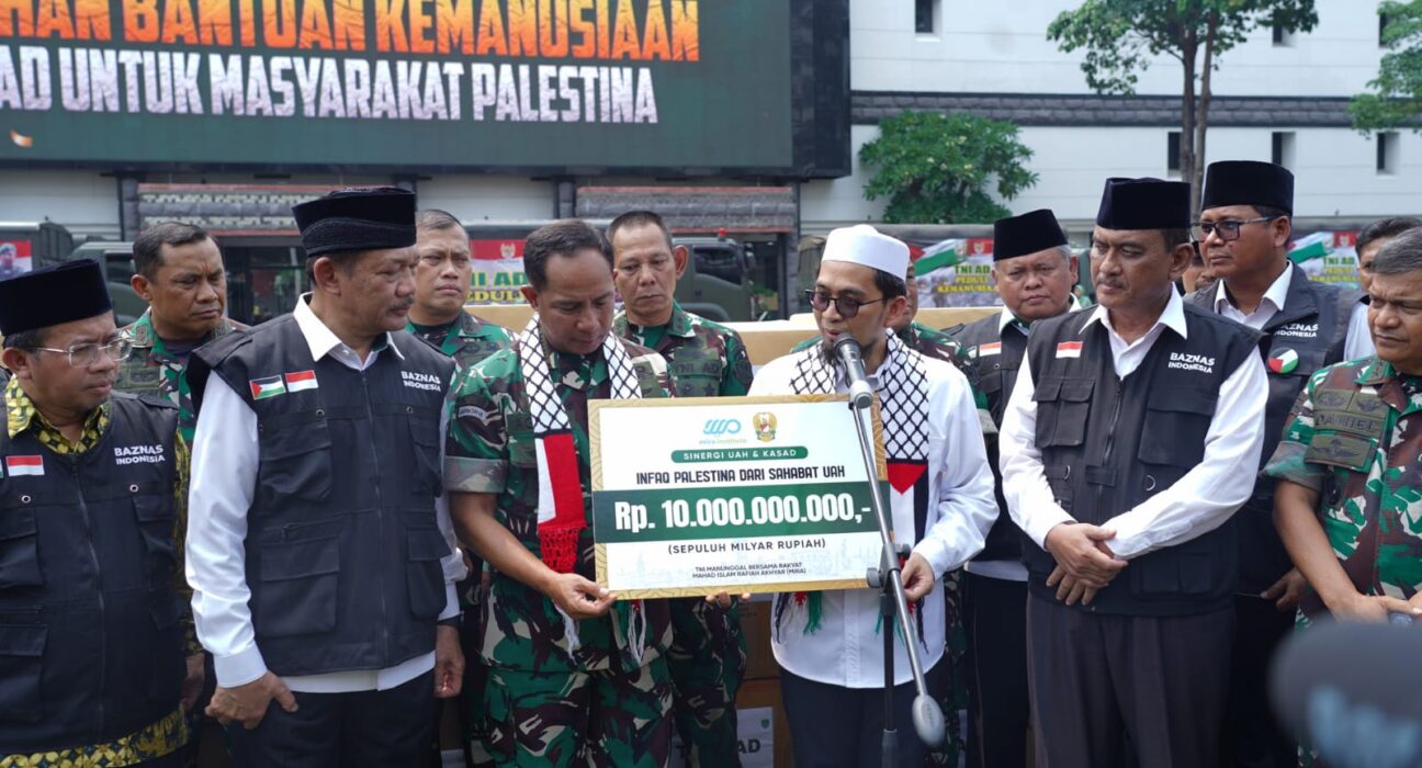 Sementara itu, Ustadz Adi Hidayat (UAH) yang merupakan pimpinan “Sahabat UAH” menyampaikan ungkapan rasa terima kasihnya kepada Keluarga Besar Angkatan Darat, karena telah diikutsertakan dalam kegiatan peduli kemanusiaan untuk Palestina tersebut. Sebagai informasi, bantuan kemanusiaan yang disalurkan dari “Sahabat UAH” adalah berupa donasi dana mencapai Rp. 10 Milyar.