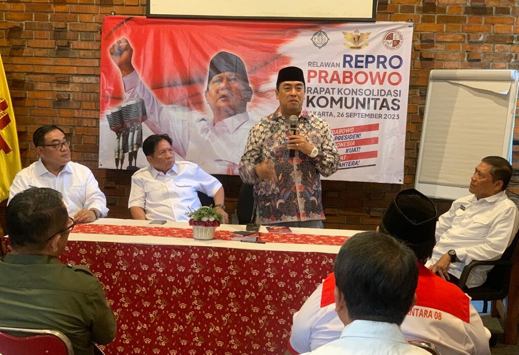 Jakarta,- Kabarlagi.id.Menteri Pertahanan Prabowo Subianto dinilai layak untuk melanjutkan kepemimpinan Presiden Joko Widodo (Jokowi) periode berikutnya.Relawan Repro PRABOWO dan FUSI rapat konsolidasi Komunitas.Bertempat di bilangan Dukuh Atas,Jakarta Pusat.Selasa (26/9).