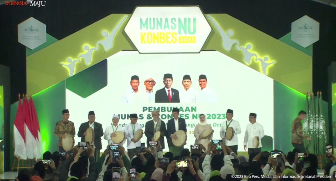 “Atas nama masyarakat, bangsa, dan negara, saya menyampaikan terima kasih kepada para alim ulama, para kiai, para masyayikh, dan kepada keluarga besar Nahdlatul Ulama,” ucap Presiden.