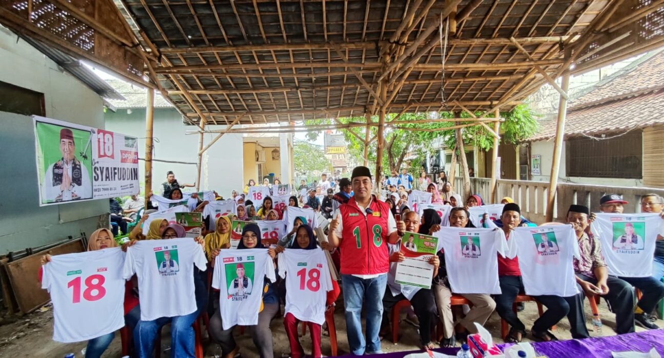 “Dengan berbagi alat peraga kampanye diharapkan warga tidak salah coblos Februari 2024.” Pesan Gus Syaifuddin kepada warga Tegal Alur.